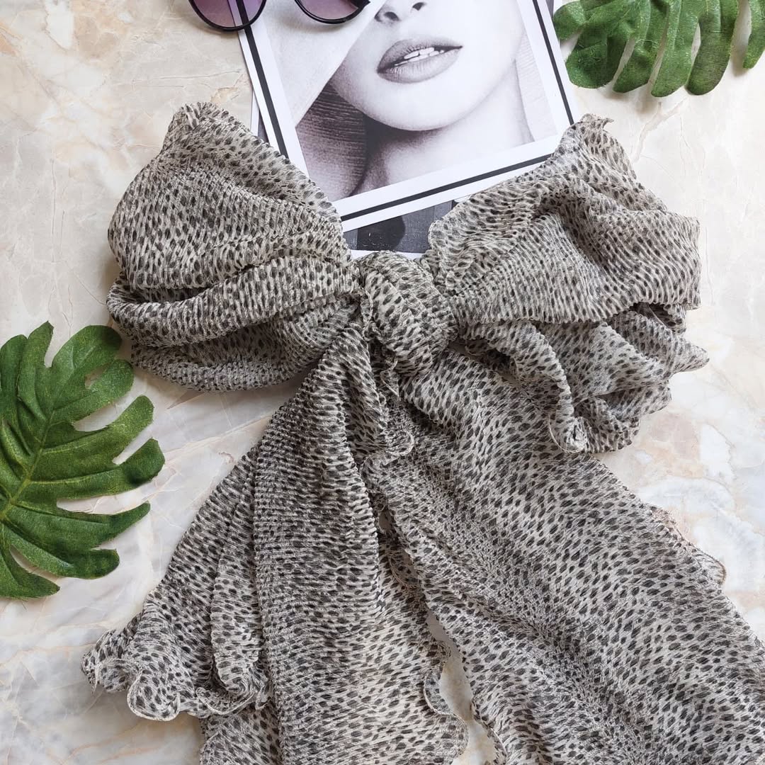 شال شنی پلنگی دالبر بافت ظریف و حاشیه دالبر مناسب برای استایلهای روزمره و مهمانی بدون چروک پذیری.